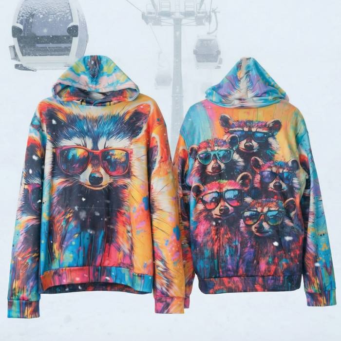 raccoons ენოტი ჰუდი ფერადი პრინტი ჰუდები სათვალე ცხოველი